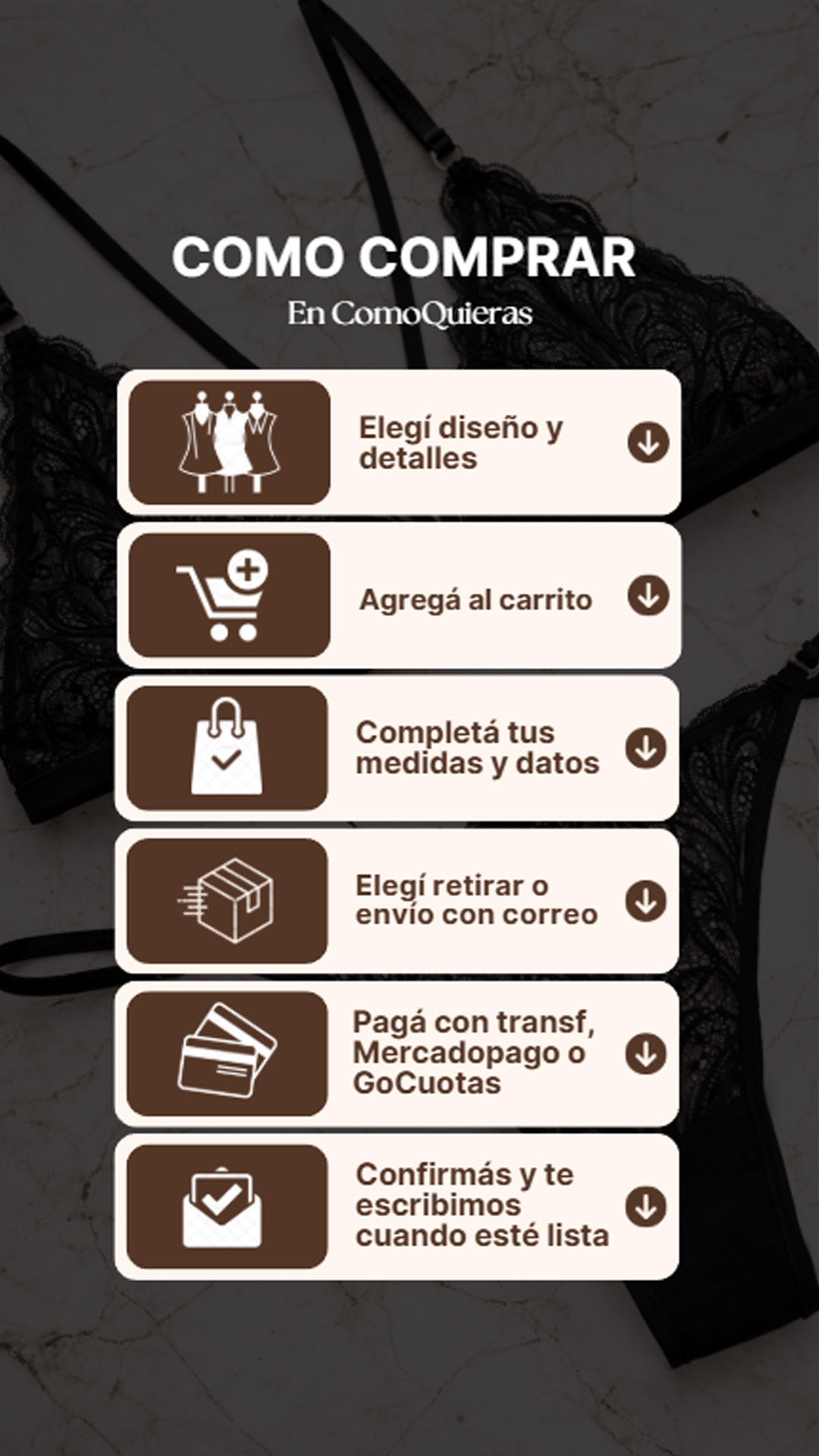 Muy conforme con mi compra. Los trajes son hermosos y la entrega fue rápida. El único detalle es que me hubiera gustado más opciones de colores.